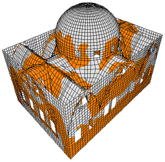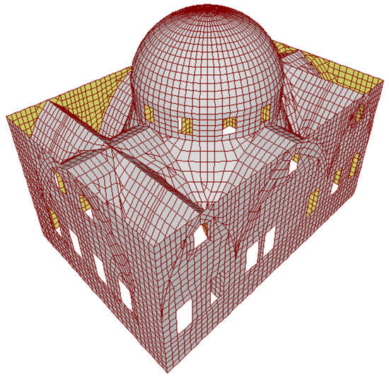 - Schiavoni, M.; Giordano, E.; Roscini, F.; Clementi, F. Numerical modeling of a majestic masonry structure: A comparison of advanced techniques. Eng. Fail. Anal. 2023, 149, 107293. [Google Scholar] [CrossRef]
