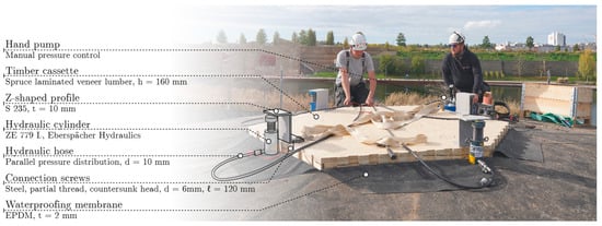 - Aicher, S. Test Report No. 903 6301 000/2: Build-Up and Manufacture of Casettes Made of LVL Ribs and Sheathings for the Wood Pavilion of BUGA 2019; Materials Testing Institute (MPA) University of Stuttgart: Stuttgart, Germany, 2019. (In German) [Google Scholar]