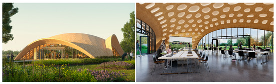 - Regierungspräsidium Tübingen. Approval in Individual Case: Wood Pavilion of BUGA 2023, Mannheim, Völklinger Street, Parcel no. 21386, 876/3, 68309 Mannheim; Regierungspräsidium Tübingen Landesstelle für Bautechnik (BW-SO-BT): Tübingen, Germany, 2023; Reference no. RPT0270-2613-4/8449. [Google Scholar]