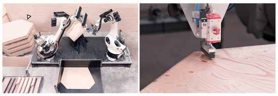 - Wagner, H.-J.; Alvarez, M.; Groenewolt, A.; Menges, A. Towards digital automation flexibility in large-scale timber construction: Integrative robotic prefabrication and co-design of the BUGA Wood Pavilion. Constr. Robot. 2020, 4, 187–204. [Google Scholar] [CrossRef]
