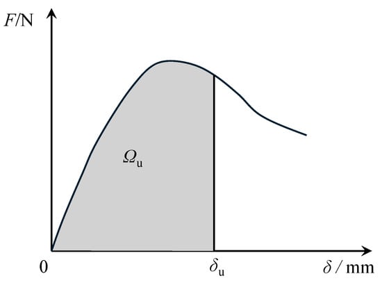 where, fequ is the equivalent bending strength (N/mm2), accurate to 0.1 N/mm2; Ωu is the area under the load–deflection curve at mid-span deflection δu (N·mm); δu is the deflection corresponding to a load drop to u times the peak load, where u = 0.85 in this study; b and h are the specimen’s cross-sectional width and height (mm); and L is the span of the specimen (mm).