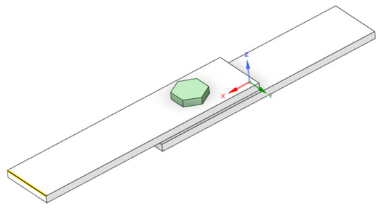 The model was established using ANSYS Workbench software. The geometry of the components consists of two steel plates measuring 260 mm × 60 mm × 8 mm, connected by bolts, as shown in Figure 16. Since the various parts are not a single entity, the model needs to be set up as an assembly, where the connections between the nuts and the plates are treated with consistent boundary conditions to ensure a tight connection between the plates and the nuts, facilitating convergence in the model calculations. The materials for each part of the model are then defined, and fixed constraints are applied to both ends of the model. A small elastic film element is placed between the two steel plates and elastically connected to the upper and lower steel plates. The changes in bolt preload are simulated by varying the Young’s modulus of the film element. Due to the simplicity of the structure in this section, a predefined free tetrahedral mesh is used to discretize the model, followed by a structural modal analysis.
