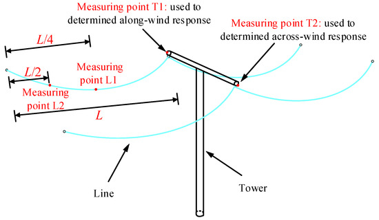 Distribution of displacement measuring points of tower–line systems.