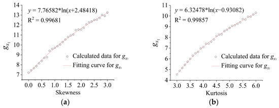 Variation curves at different skewness and kurtosis of . (a) The variation curves of under different skewness. (b) The variation curves of under different kurtosis.