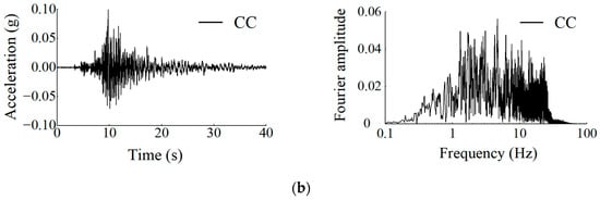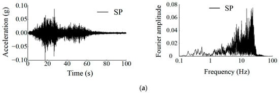 Time histories and frequency content of input ground motion. (a) SP. (b) CC.