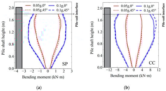Bending moment envelopes of square pile. (a) SP. (b) CC.