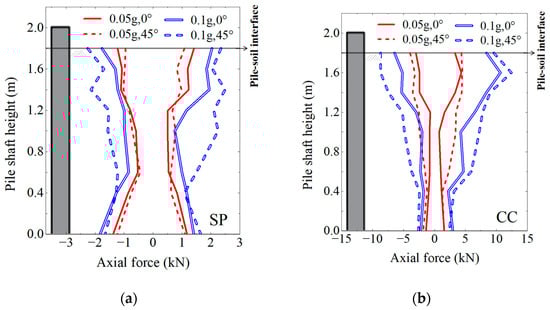 Axial force envelopes of square pile. (a) SP. (b) CC.