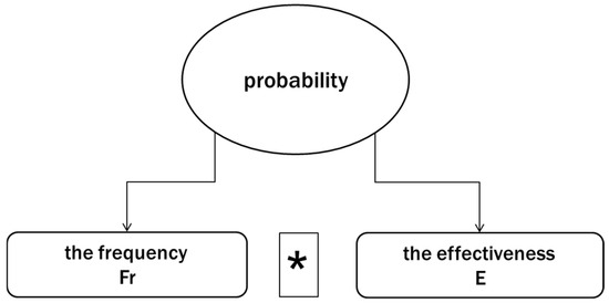 The third step in the risk assessment process involves estimating risk probability. To enhance the accuracy of this estimation, a proposed solution is to incorporate two essential factors: frequency and effectiveness. Frequency, denoted as Fr, represents the number of repetitions for this risk within a specific timeframe (which may include the project duration or the investment period, at the discretion of the risk manager) and is taken from historical records of such risk. The range for Fr is defined as [0.1, 1]. On the other hand, the second factor, effectiveness, measures the extent to which risks influence the project’s original objectives, referred to as effectiveness, and is denoted as E. The range for E is specified as [1, 10], as shown in Figure 3. Further elaboration on these factors is provided in Table 4. Consequently, the probability of risk can be determined by multiplying the values of Fr and E, resulting in Equation (2):