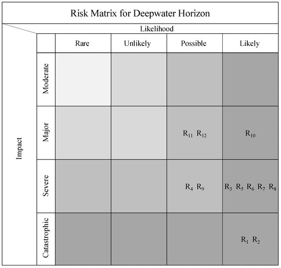 Risk matrices (RMs) are a valuable graphical tool employed for risk representation within the realm of safety science. The underlying framework of RMs utilizes a bitmap approach, relying on two fundamental components: probability and consequences [8,30,31,32]. Probability indicates the likelihood of potential consequences, with estimations derived from available information about previous or similar risks. This likelihood value is represented within a range from 0 to 1, effectively reflecting the existing state of uncertainty [33,34]. On the other hand, consequences pertain to the impact of risks on diverse objectives, wherein each objective possesses its unique level of urgency. For instance, in the context of preserving human lives, the consequences would manifest as the number of lives lost or injured [35,36].
