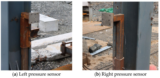 The layout of the pressure sensor installation is illustrated in Figure 5. A series pressure sensor was selected for the experiment. The data cable was routed through the internal bore of the experimental setup and connected to the overpressure sensor. Due to the violent vibration caused by the high-speed movement of the cylinder under the explosive environment, the fixed bracket of the displacement sensor falls off, resulting in data drift. This study focuses on dynamic analysis through numerical simulation.