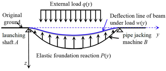 According to the elastic foundation beam theory, the differential equation of the deflection curve for the pipe jacking mechanical model is derived as follows: