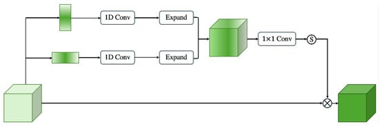 where and represent horizontal and vertical strip pooling, respectively. The is the interpolation operation. Finally, by multiplying the output with the original input, cracks are highlighted, and background noise is suppressed, which can be represented as