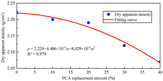 The variation of apparent density of PCC specimens with PCA content is shown in Figure 6.