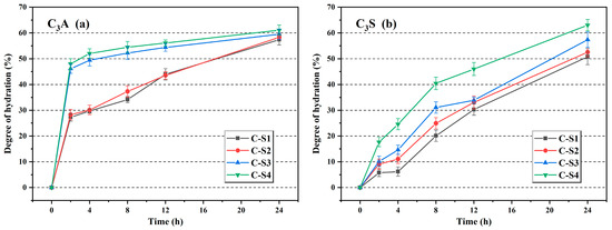 Figure 18. The hydration degree of C3A (a) and C3S (b).