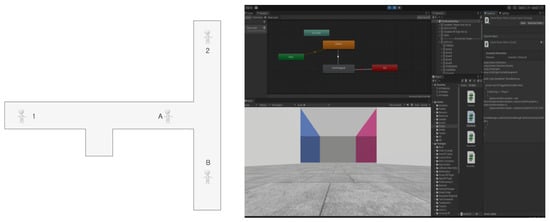 Decision points were located where participants could save time, make better choices, reduce the risk of getting lost, and perform tests more easily. A decision point, as seen in Figure 2, was programmed to transmit to the VR device using C++.