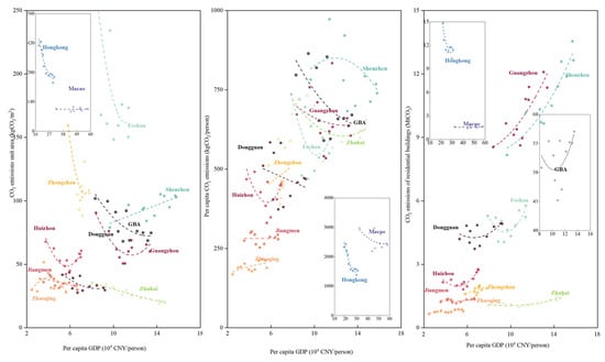 - In GBA cities, CO2 emissions per unit area, per capita of building CO2 emissions, and building CO2 emissions reached a peak in that order.