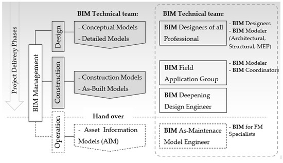 Figure 1 has been adapted from guidelines outlined in the ISO 19650 series (ISO 19650-1, ISO 19650-2), PAS 1192-2, PAS 1192-3, and typical BIM Execution Plans (BEP). The figure illustrates the handover gap between BIM management during the construction and operational phases, underscoring the necessity of defined organizational roles, structured workflows, and standardized deliverables.