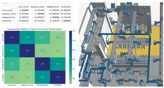 Extensive testing was conducted to validate the interoperability and functionality of the developed integration dashboard. This evaluation focused on assessing effective integration across diverse data sources. (Figure 13), the web-based dashboard provided real-time, spatially contextualized visualization of IoT sensor data within the BIM environment, confirming robust interoperability. The dashboard also included fundamental analytical tools, such as heatmaps, illustrating spatial variations in environmental parameters.
