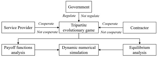 To tackle these issues, the present research proposes an evolutionary game-based analytical framework incorporating government, contractor, and service providers within a single model, which includes explicit reward–penalty mechanisms. By constructing a payoff model and the related replicator dynamics under incomplete information, we aim to uncover how strategic choices evolve and how equilibrium forms in multi-stakeholder contexts. This model provides the theoretical foundation for subsequent simulation and case analysis, eventually guiding the design of improved governance and incentive systems for effective construction digitalization.