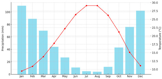Adana’s monthly average temperature and precipitation (data from [29]).