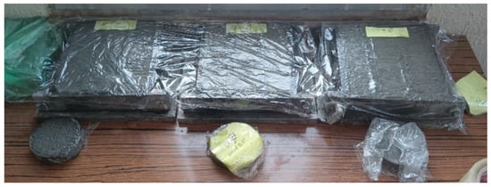 - Prismatic samples (160 × 40 × 40 mm): Used for bulk and true density determination (ASTM D4892) and mechanical performance tests (compressive and flexural strength) in accordance with BS EN 196-1. As presented in Figure 4 below.