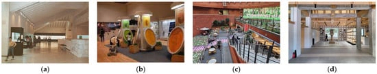 First, in Japan, the analysis of museums proposed by Shigenobu Hanzawa in Museum Architecture in 1991 groups their parts into introduction area, exhibition area, storage area, research–study–information area, education-dissemination area, and management-common area []. In addition, the “Art Museum: A Collection of Examples of Architectural Design Data”, translated by the Architectural Data Research Association in the same year, divided museum regions into public areas (introduction, exhibition, education, and dissemination) and private areas (storage, research, and management) [].