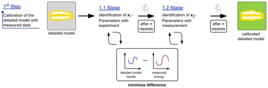 Illustration of the calibration workflow of the detailed model, as the first step of the methodology.