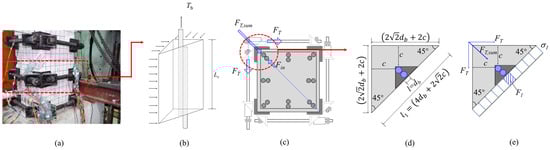 As shown in Figure 5d,e, the relationship between the required lateral force Fl and the required strengthening force FT (which is applied on the threaded rods of the strengthening device) can be obtained with the force balance of the isolated body.