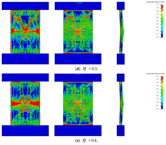 (3) Aspect ratio plays a critical role in blast performance. Walls with higher aspect ratios (i.e., slender configurations) suffered increased out-of-plane displacement and concentrated damage, whereas lower aspect ratios (i.e., wider walls) exhibited better blast resistance and more distributed damage patterns.
