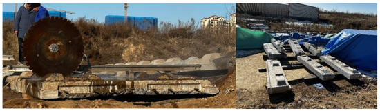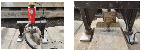 Three shoulders of fire-damaged track slabs without cracking were selected for bearing capacity testing. The photographs of the test are shown in Figure 9. The photographs before and after testing for each shoulder, along with the test results, are presented in Figure 10 and Table 6.