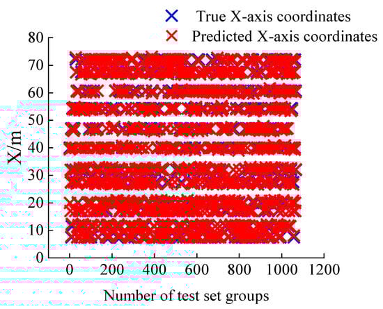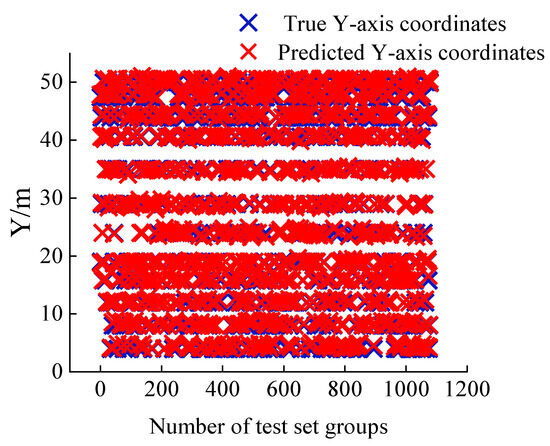 Figure 14, respectively. It can be seen that the distribution of the predicted points coincides with the labels, and only a small number of points deviate, indicating that the model performs well in the spatial coordinate prediction task. The