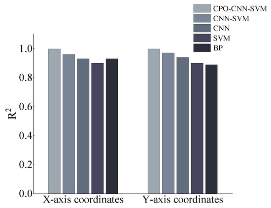 R2 values, indicating that the CPO-CNN-SVM model demonstrates a significant advantage in the task of fire-source coordinate prediction. The