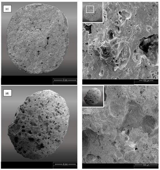 The presence of volatile or reactive compounds, such as carbonates, sulfates, and organic matter, promotes the release of gases during heating, forming microcavities that significantly reduce the density of the material [8,9,27,35,36]. During sintering, precise temperature control is crucial to ensure partial fusion of the particle surface, trapping the released gases and preserving the internal cavities without collapsing.