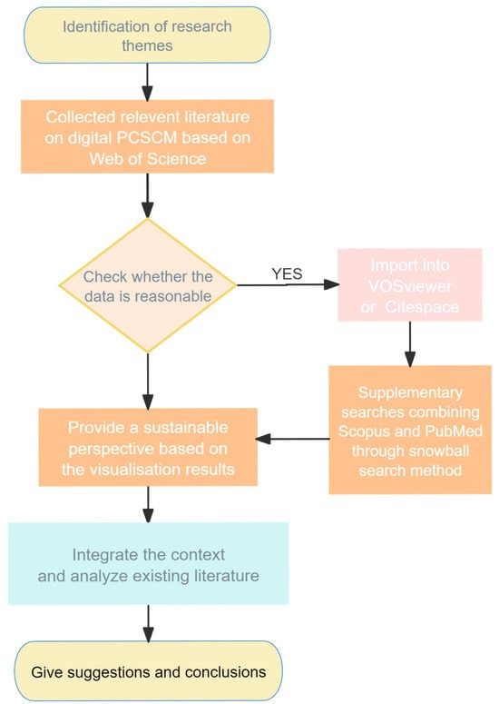 The selected relevant literature is imported into Citespace and VOSviewer after screening. And, then, the output includes scientific and technical journals, publications, citations, countries, authors, keywords, and so on through the form of visual charts. In addition, this review further verifies the completeness of the literature by following up with the snowball method [7] to ensure that key literature is not omitted. By studying the shortcomings of the existing literature on the application of digital technology in the sustainable development of PCSCM, corresponding improvement measures are proposed to provide guidance for subsequent studies.