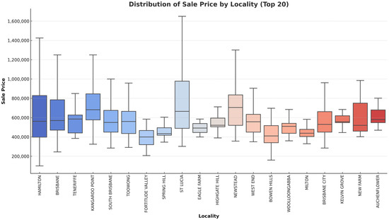 Data on the characteristics and timelines of the urban megaprojects in Brisbane were collated and include details such as the project scope, expected completion dates, and key milestones to ensure the reliability of the results. This information was obtained from the official websites of the projects. Figure 1 presents the transactional distribution between 2016 and 2022 across the top 20 localities in Brisbane.