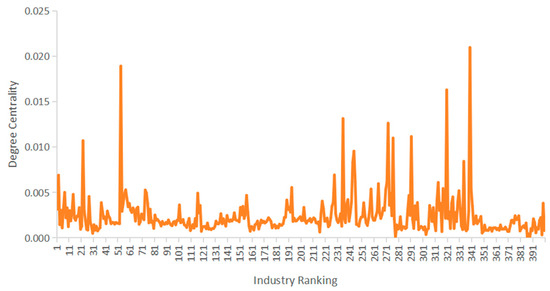To construct an industrial complex network, it is first necessary to determine the industrial nodes according to the classification of industrial sectors in the input–output table. According to the different research objectives, the industrial sectors in the input–output table can usually be split or merged, or some industries can be screened based on the original input–output table.