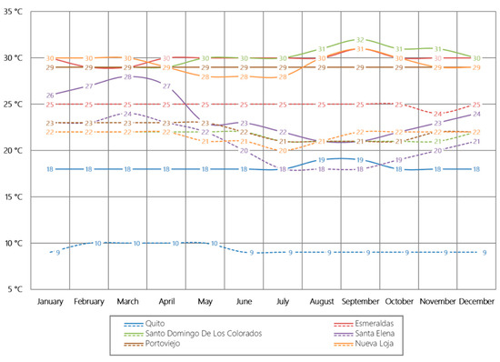Thermally comfortable indoor environments are essential for preventing health risks such as heat stress and cardiovascular conditions [15,23]. In Ecuador, the housing deficit in 2020 was 13.92%, according to the National Institute of Statistics and Census (INEC) [24,25]. In response, the government launched initiatives like the “Casa para Todos” program [26], aiming to construct 220,900 housing units between 2019 and 2021 [27].