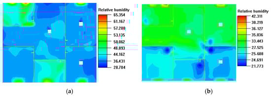 Cloud view of indoor relative humidity changes. (a) Relative humidity in an unventilated room; (b) relative humidity in a ventilated room.