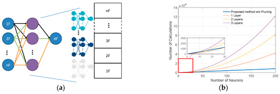Illustration of neural network array: (a) architecture and (b) computational expense.