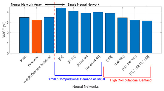 Table 6 presents a performance comparison between the initial and pruned neural networks, employing the same pruning strategy based on the LTH as used in the numerical example. Initially, the neural network array is configured with eight input features and 220 neurons per model. Following pruning, the RMSE decreases by approximately 0.2% to 2%, depending on the model, while the network complexity is reduced by up to 63%.