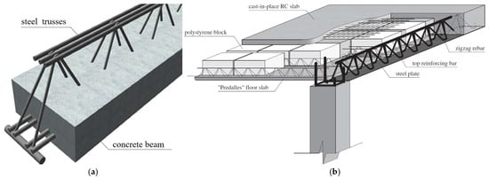 - Tesser, L.; Scotta, R. Flexural and shear capacity of composite steel truss and concrete beams with inferior precast concrete base. Eng. Struct. 2013, 49, 135–145. [Google Scholar] [CrossRef]