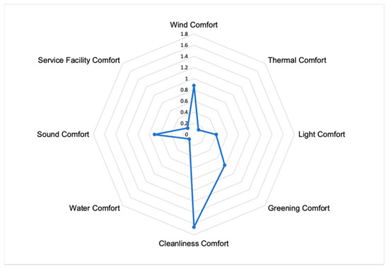 | A: Outdoor Environmental Comfort Improvement | B1: Wind Comfort | 0.1095 | 0.874 | C11: Wind Speed | 0.0872 | 9 | 0.7848 |