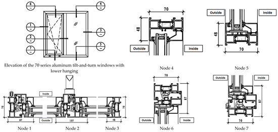 The node details of the 70 series broken-bridge aluminum tilt-and-turn windows [32]. Note: ‘Node’ means the profile construction of the window frame and glazing.