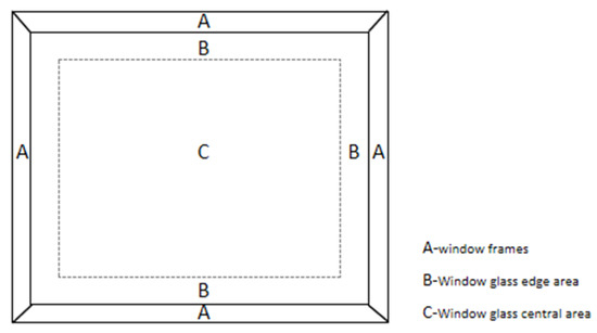 Among these, the range of the central window glass area, the window glass edge area, and the window frame area are shown in Figure 4.