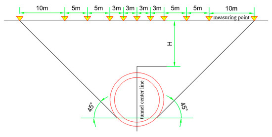 - An, J.; Lei, H.; Wang, R.; Zhang, J.; Ding, H.; Ren, S.; Yu, K.; Yang, X.; Guan, X. Study on Surface Settlement Characteristics and Control Technology of Shield Tunnel Parallel to Overlap Construction. Constr. Tech. 2023, 52, 97–101. [Google Scholar]