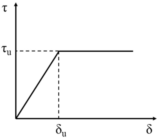 The relationship between pile side skin friction and pile–soil relative displacement is shown in Figure 4. The mathematical expression is as follows:
