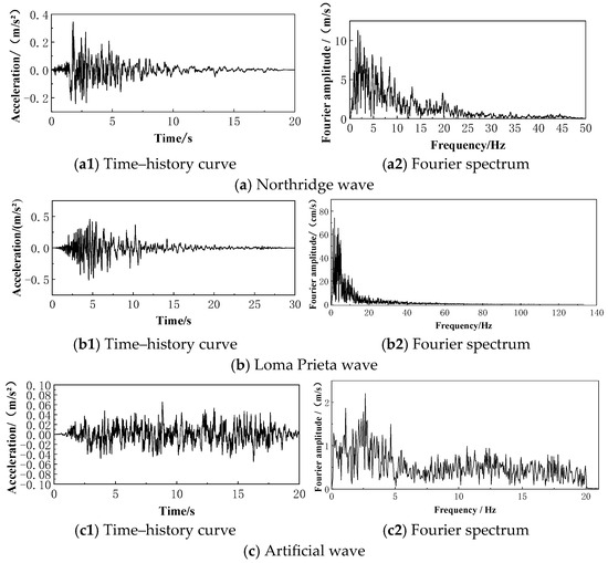 Seismic wave acceleration time–history curve and Fourier spectrum.