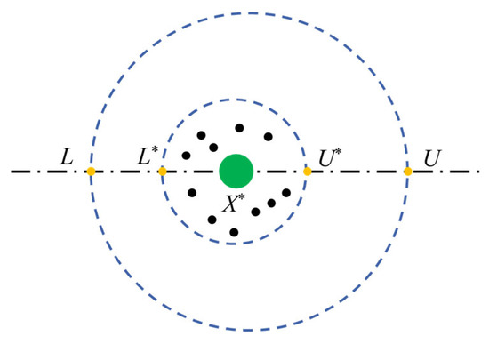 In the equation, L∗ is the upper boundary of the oviposition area; U∗ is the lower boundary of the oviposition area; X∗ represents the local optimal position; L is the upper bound of the optimization problem; U is the lower bound of the optimization problem; and Tmax is the maximum number of iterations.