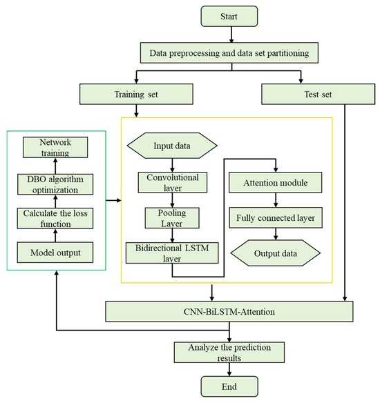 Flow chart of CNN-BiLSTM-Attention optimized by DBO.