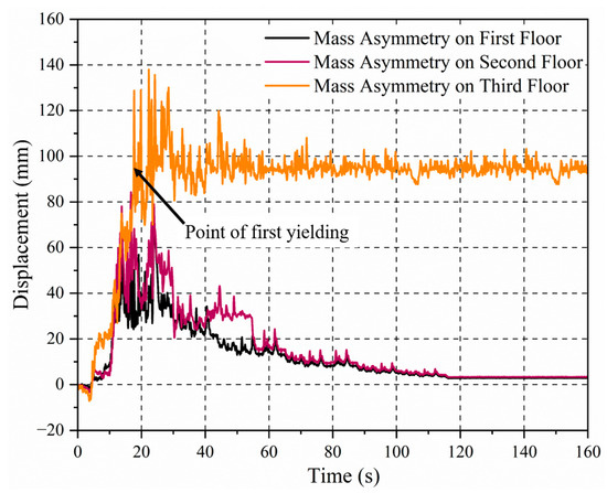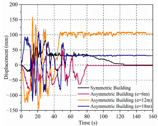 Top-floor displacement time history of vertical mass asymmetric buildings under earthquake.
